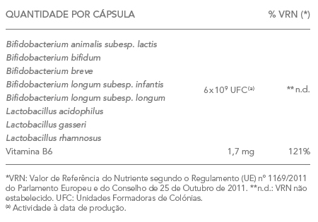 Natur-Biotic é um suplemento Alimentar que apresenta na sua composição 5 Bifidobacterium, 3 Lactobacillus e Vitamina B6, componentes estes indispensáveis ao equilibrio do sistema imunitário.